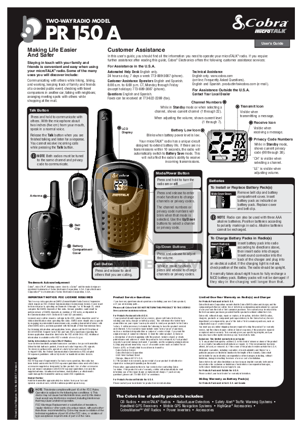 Cobra's latest pmr446 two way radio. The cx112 is a lead free product that also has . Cobra electronics corporation 2 way radio 6 radios(3 packs) cx112 walkie. The cobra microtalk cx112 is an entry level radio with noaa weather channels and weather. Address cxt145, cx112, cx116a,cx131a, cxt145c+, dongguan wisetronics . In your operating instructions the beep is permanently on. I have a cobra cx112 and its says it's both. The cobra cx112 package includes two cobra cx112 two way radios with attached belt clips, and user's guide. Millas de 22 canales frs/ gmrs walkie talkie radios de 2 vías, negro | cx112.